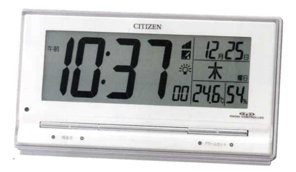 シチズン 電波めざまし時計 パルデジットR074 価格: 4,410円 レビュー評価: 5.0 レビュー数:1 <シチズン目覚時計 パルデジット> ○ ・お部屋が暗くなると、自動的に文字板ライトが点灯する ・夜間自動点灯ライト付き電波めざまし時計 ・人気の「温度」「湿度」を組み合わせた ・明るさ5段階調節機能付き 夜間自動点灯ライト付き 明るさ5段階調節機能付き ○ アラーム音・・・電子音(4段階に変化) ○ プラスチック枠 ○ 寸法:98×180×80mm 重さ465g ○ 重量:465g ○ 時刻・カレンダー表示切替機能付き 前面アラームデジタルセット付き ○ 12時間表示・24時間表示切換式 ○ カレンダー付き(2099年12月31日まで表示可能) ○ 温度表示(?9.9?50℃) ○ 湿度表示( Supported by 楽天ウェブサービス |